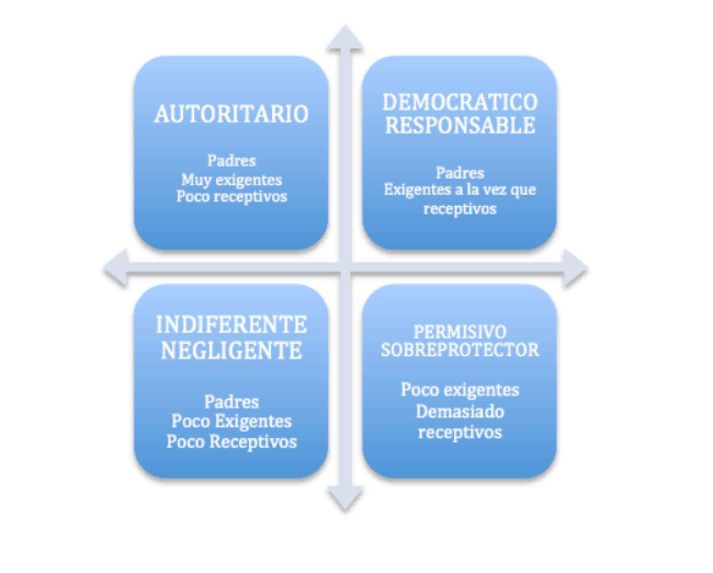 - Ser unos padres democráticos. Más abajo tenemos una gráfica de los estilos parentales. Unos buenos padres son los que muestran a sus hijos afecto y además ponen límites. Debe haber un equilibrio entre cariño-normas. Los padres autoritarios se identifican por ser muy estrictos en sus normas y dar poco afecto, lo que crea en los adolescentes sentimientos de inferioridad y de baja autoestima. Los padres permisivos dan mucho cariño pero no establecen límites, por lo que hará que los adolescentes adopten conductas más agresivas. Por último, los padres indiferentes, ni dan cariño ni ponen límites y también crearán sentimientos de baja autoestima y conductas antisociales como el consumo de alcohol y drogas en sus hijos/as. Por tanto, la educación por parte de los padres debe ser lo más equilibrada y democrática posible, dándoles afecto, escuchándoles, negociando y establecer normas claras, cerciorándonos de que las entienden.